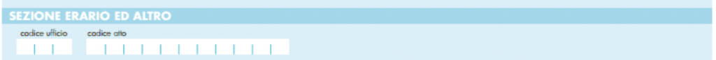 - CODICE UFFICIO: questo campo va compilato in caso di versamento imposta di registro per le annualità successive alla prima (rinnovo), proroga o risoluzione. In tali ipotesi occorre inserire il codice identificativo dell’ufficio indicato sul contratto di locazione al momento della sua registrazione e disponibile sul sito dell’Agenzia delle entrate.