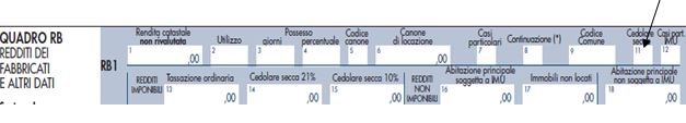 L’opzione per la cedolare secca si effettua barrando nel quadro RB del modello redditi, la casella 11 (contratti non soggetti a registrazione) ovvero la colonna 3, del rigo RL10, in presenza di redditi diversi.