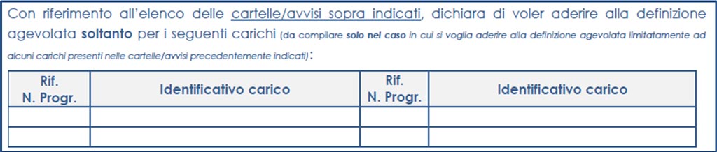 SEZIONE 4 – ADESIONE ALLA ROTTAMAZIONE TER SOLO PER ALCUNI DEBITI INDICATI IN CARTELLA