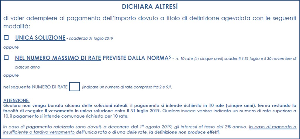 - pagare in un’UNICA SOLUZIONE entro il 31 luglio 2019;
